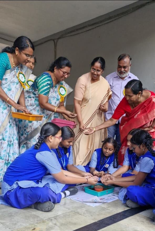 ప్రిన్సిపాల్ సిస్టర్ రజిత గారు, అడ్మిన్ లీలా కుమారి ఏలూరి గారు, అధ్యాపకులు, విద్యార్థులు పాల్గొని వన్ ఎర్త్ – వన్ లైఫ్ టీం సభ్యుల పర్యవేక్షణలో సీడ్ బాల్స్ తయారు చేసి పచ్చదనం పట్ల తమ ప్రేమను వ్యక్తం చేశారు. 🌾